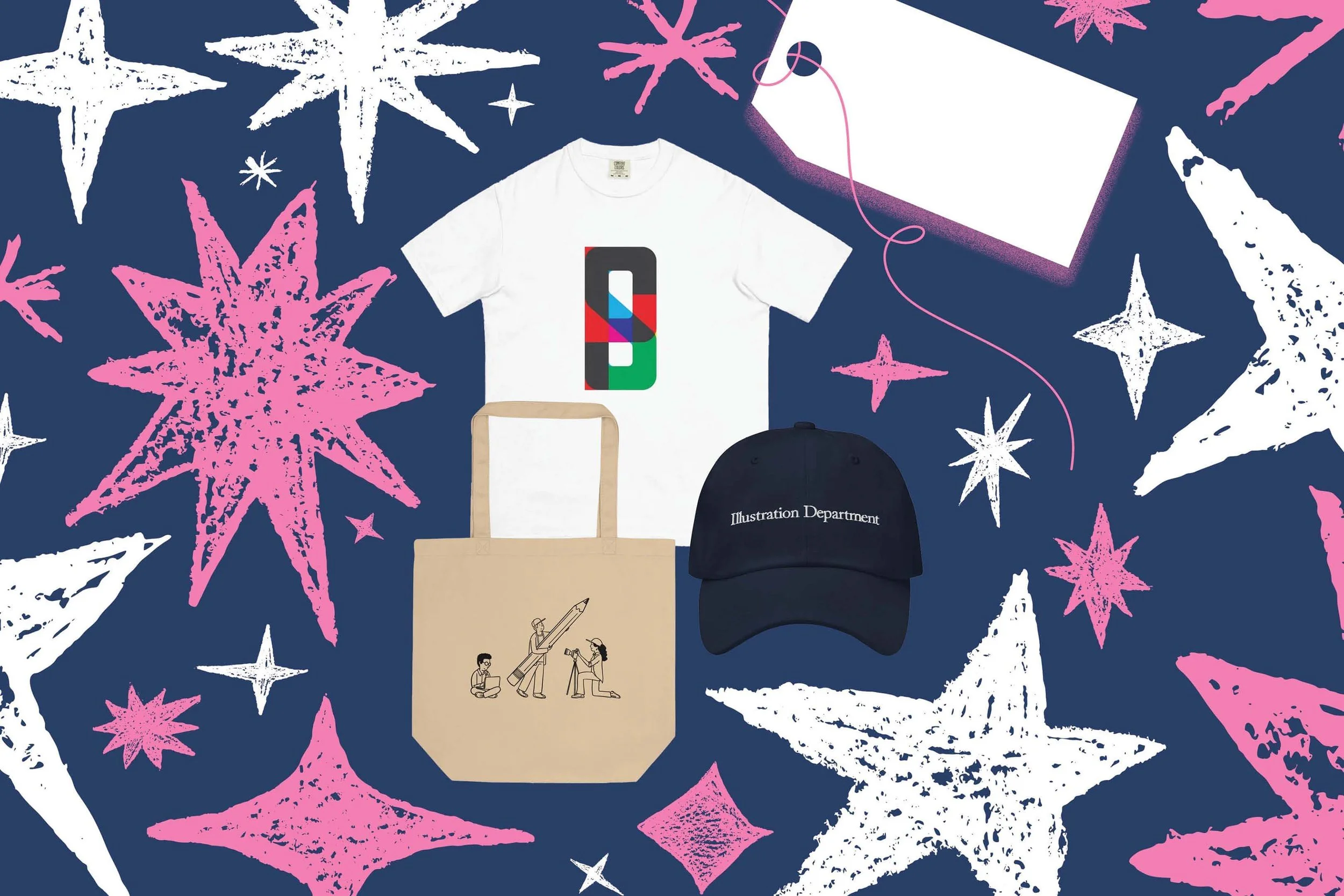In the image: Chris Gural "Artists" Tote, Overlapping Logo T-Shirt, Embroidered Illustration Department Dad Hat.