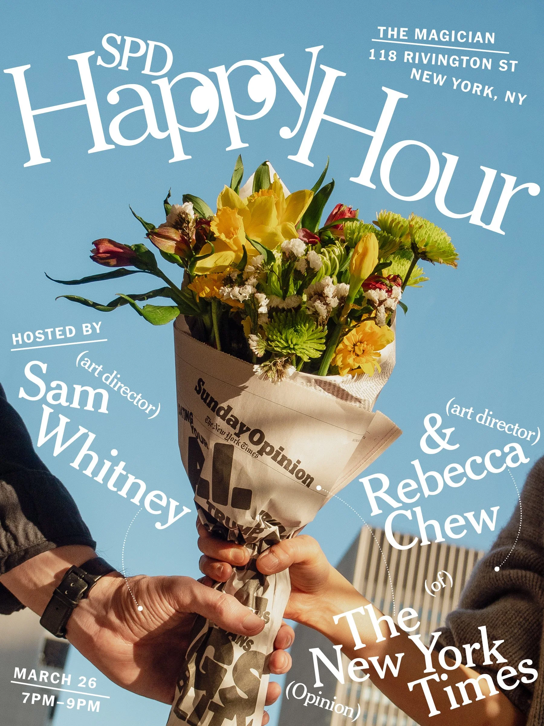 Join us on Thursday, March 26th for our SPD Last Thursday Happy Hour in New York City hosted by The New York Times Opinion’s Art Directors Sam Whitney and Rebecca Chew.